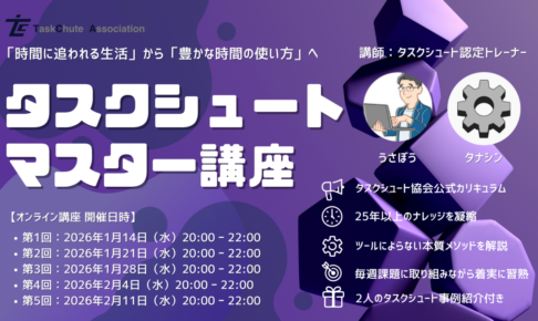 タスクシュート協会が提供する公式カリキュラム「タスクシュートマスター講座」のご案内です!定員は5名です。 本講座はタスクシュートの思想や原則を深いレベルで体系的に身につけていただき、「時間に追われない豊かな生活」を実現で…