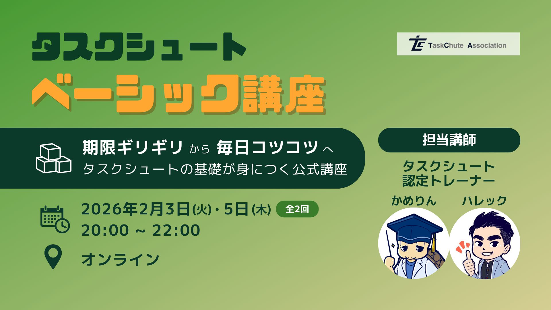 2026年版の最新ツールに基づいて、最新の考え方でタスクシュートを習得できます。ぜひこの機会にご参加ください!