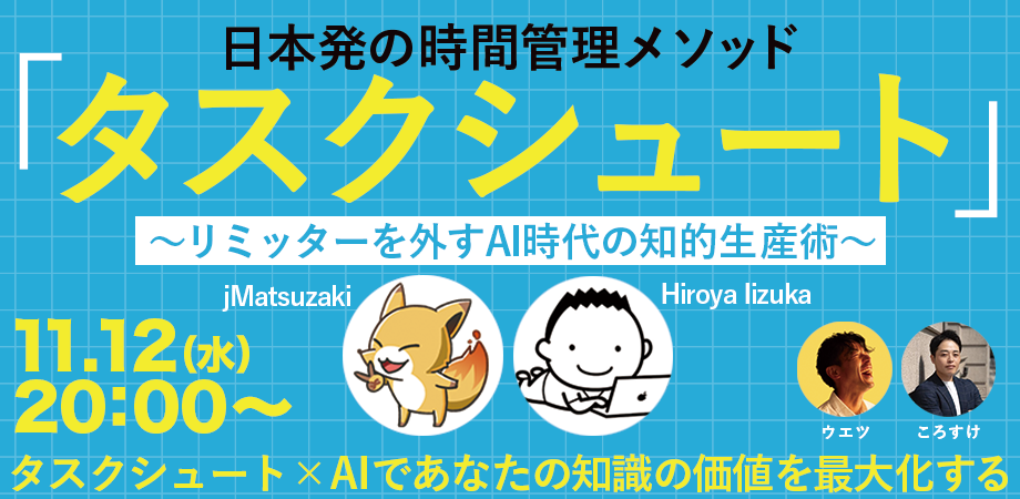 2025年11月12日にADP様とタスクシュート協会で共同開催したオンラインセミナーの収録動画です。タスクシュート総決算2025にも登壇する飯塚浩也さんとjMatsuzakiの2人のレクチャーを予習がてらぜひご覧ください。