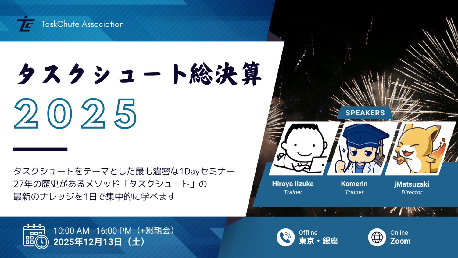 タスクシュート総決算はタスクシュート協会が主催する1dayセミナーです。